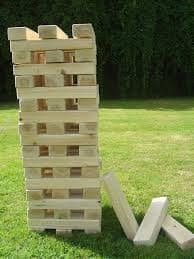 Our giant Jenga is the perfect add on to any party, you can have endless hours of fun with all your family and friends adult and kids alike. our giant wooden blocks are easy to use and are weather proof so can be used indoor and outdoor.