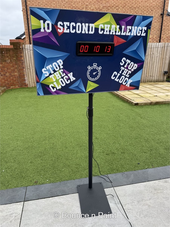 Games hire 10 Second Challenge in Stockport, Stretford, north west, Manchester, urmston. Fast-paced. Easy to set up. Instant fun for all ages. Test your reaction and stop the clock on 10 seconds. Ideal for parties, corporate team building, school events and community fairs. This compact game delivers big excitement and high crowd engagement.