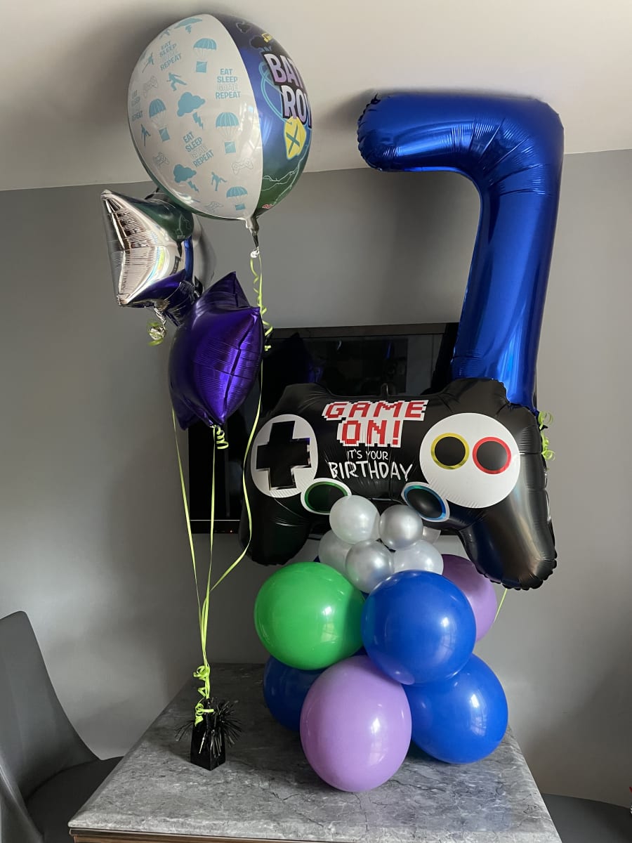 for more designs or to discuss a single number balloon column please call 07808 277 345 or find us on instagram or facebook at Bounce n Paint Balloons and Printing