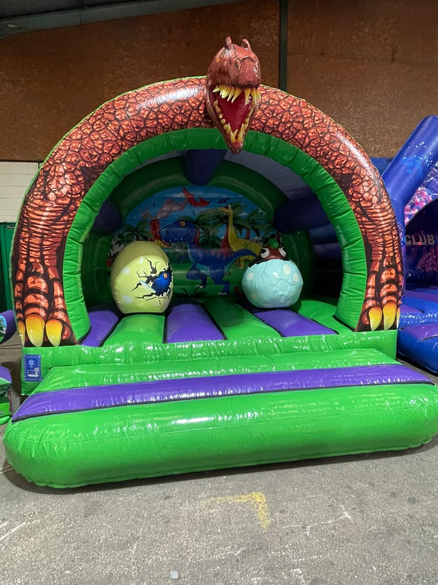 Bounce n paints brand new 3d dinosaur bouncy castle we’ll be the talk of the party with its striking artwork and 3d dinosaur head on the top, inside this amazing castle it has 2 inflatable dinosaur eggs that the kids can jump on, hide behind and play with to give them hours of fun .