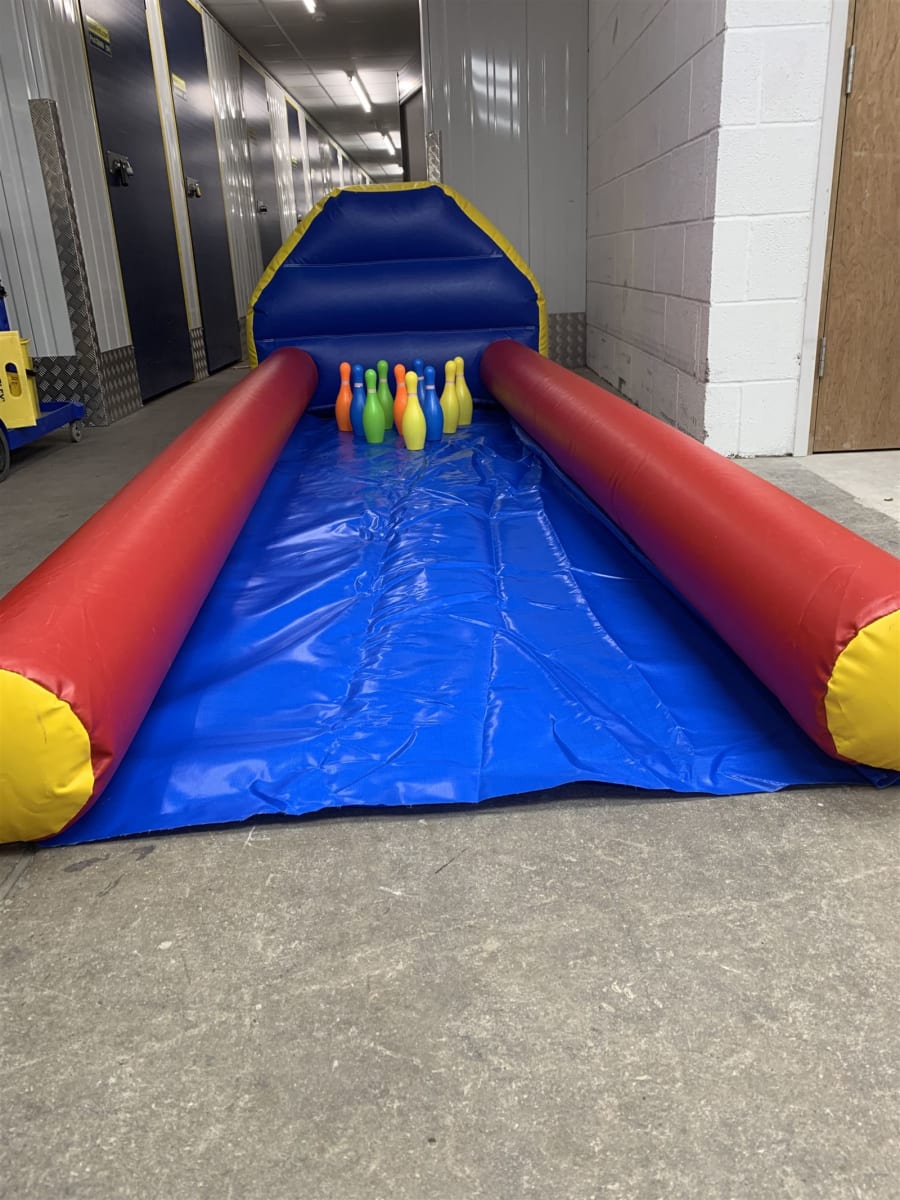 Bounce n paints Brand new inflatable bowling alley is perfect for any event or venue it is only 10ft long and 4 ft wide so will fit almost anywhere.
