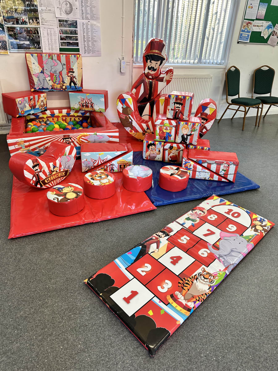 Our brand new Circus soft play is perfect for the younger kid and comes with 17 bright and colourful foam shapes with a large rocker and the 3 ft ball pool with hundreds of balls inside will keep the kids entertained for hours.